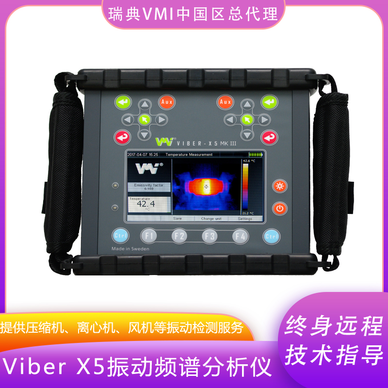 瑞典VMI多功能振动分析仪Viber X5 MK III 是广受用户欢迎的Easy Viber 的更新换代产品,并且经过前期的发展后成熟完善和定型的产品。 X5 利用了Texas 仪器处理器的超强性能,具备工业应用中最快速的DSP 处理器,同时继承了历经时间考验的被广泛认可的功能特性,快捷完成各种现场振动分析工作。