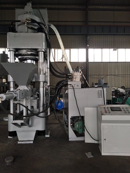 金属屑压块机机架部分采用整体铸钢件,杜绝了钢板焊接件的开裂,提高了设备的可靠稳定性和使用的寿命。采用先进的液压传动技术及叠加组合阀块,使用优质的耐磨油封,油缸采用国内高科技工艺加工组装,从而保证连续运转不减弱油缸压力,经久耐用,运行平稳,电脑控制,自动化程度高,故障率低,维护容易等,根据用户情况另带螺旋自动送料器、链条式自动出料器,降低了工人的劳动强度。