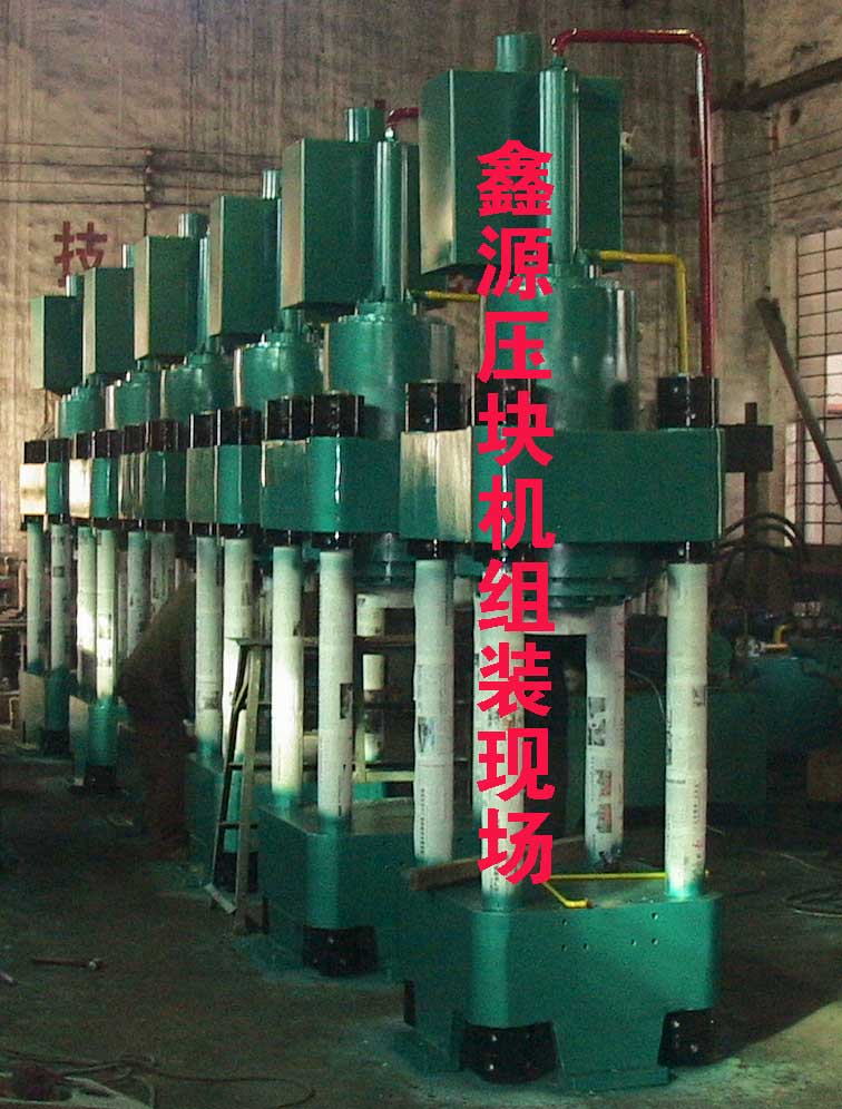 南京市全自动海绵铁高密压块机电脑控制 维护容易Y“鑫源”牌全自动液压海绵铁高密压块机能将海绵铁在不加入任何粘合剂的情况下压制成高密度圆柱形饼块(重量2-12公斤),饼块密度可达5T/m³以上(海绵铁含铁量不同,压出饼块密度不重量也不相同)。