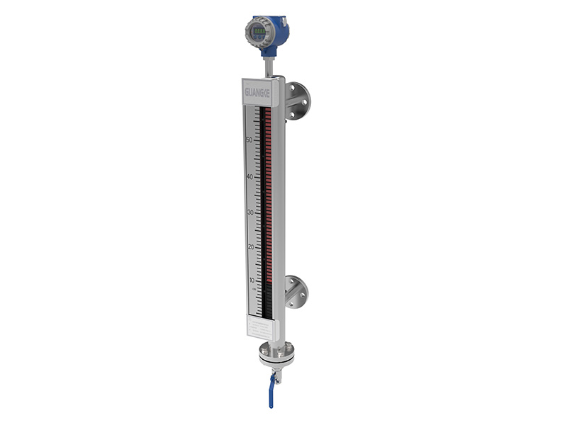 磁性液位计是以磁性浮子为测量元件。当储罐内液位发生变化时,会使带有磁钢的浮子跟随液位浮动。浮子的浮动将液位变化通过磁性耦合原理线性的传递给指示器中的磁翻柱(板),磁翻柱(板)经过180°旋转使指示颜色发生变化,从而达到指示储罐内液位的目的。