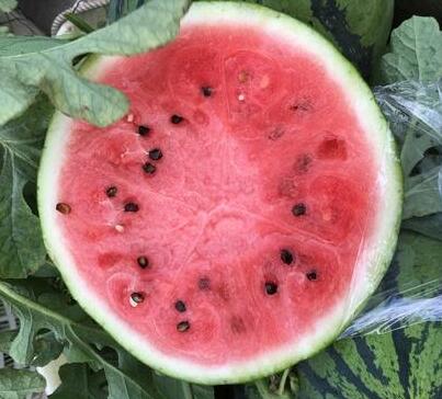 二、美都西瓜苗品种:单瓜重6-9公斤、口感好吃、耐运输;中早熟,花后30天左右成熟,果实圆球形,覆墨绿色条纹;瓤色桃红,甜爽多汁,中心糖度13度左右,品质佳;是各大基地栽的西瓜品种,较耐贮运。