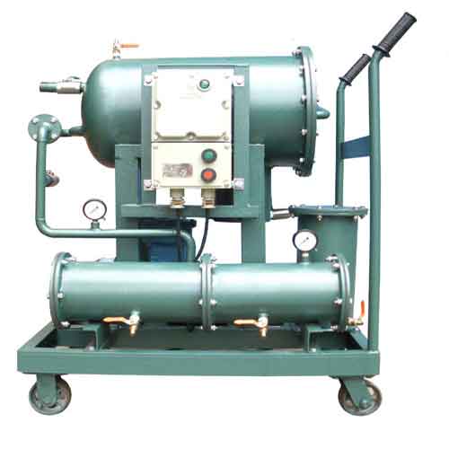 适用于石油、石化、煤矿、冶金、电厂等易燃易爆环境下使用而设计的滤油机,其中电机、电磁启动器采用防爆型。广泛适用于含水量高的轻质油及燃油,集精密过滤及除水两种功能为一体,应用 “聚结分离”技术进行除水。除水快、能力强,尤其对油液中大量的水进行分离,具有真空法、离心法的优点,可破除介质中全部的油水乳化结构;通过颗粒过滤系统的过滤,可将介质的清洁度稳定的控制在系统要求状态,以保证油液的清洁度,不改变油液的物理、化学元素,延长油液的使用寿命,能耗小,运行费用低。系统配置优良,连续工作能力强,适合在线运行不需加热即可除去大量水分,除水速度快,可将一半油一半水的油分离出来,推车式设计,使用方便。