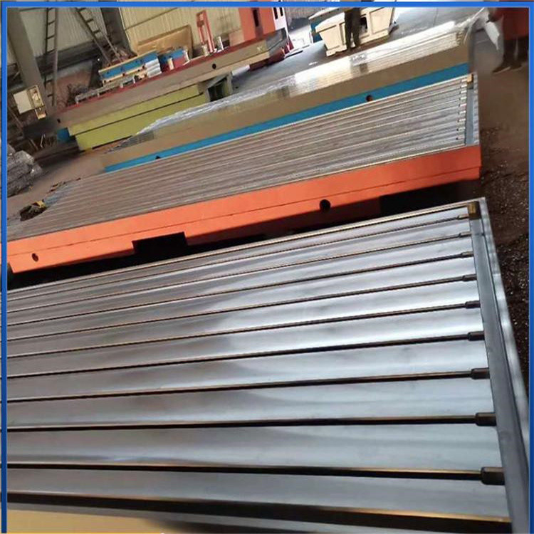 T型槽试验铁底板、实验室测试铁底板是汽车及其零部件、齿轮箱、发动机、电机、减速机、测功机等设备及零件进行试验台架试验时的基础工作平台,工作面带有T型槽、圆孔、水槽或油槽,T型槽用来固定设备水槽,油槽用来导出及循环冷却水或油。