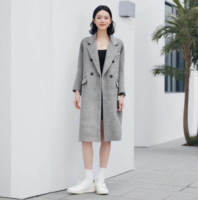 温碧霞自创IRENENA服装秋冬新款韩版毛呢外套灰呢子大衣