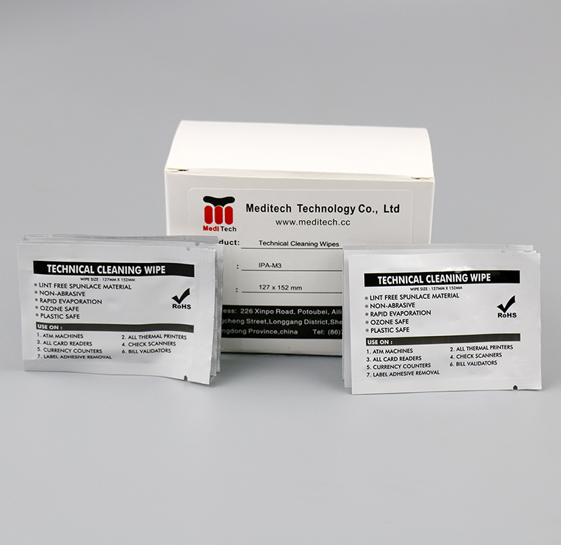IPA-M3清洁布由纤维布+IPA溶液构成,适用于大面积范围的日常清洁,可用于证卡打印机,热敏打印机,条形码打印机,标签打印机,喷墨打印机,ATM,POS机,读卡器,液晶屏,手机,键盘,玻璃等等。