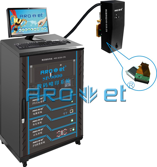 在墨水供给泵的压力作用下,油墨从墨水箱经过墨路管道,调节压力、粘度、进入喷枪,随着压力的持续,油墨从喷嘴喷射出,油墨在经过喷嘴时,受压电晶体的作用断裂成一串连续的、间距相等且小相同的墨滴,喷射墨流向下继续运动经过充电极被充电,在充电极中墨滴从墨线中分离出来。充电极上加了一定的电压,当墨滴从导电墨线分离出来的时候会在瞬间带上与充电极所加电压成正比例的负电荷。通过改变充电极的电压频率,使其与墨滴断裂的频率相同,这样可给每一个墨滴都充上预定的负电荷,在压力的持续下,墨流继续向下运动,从两个分别带有正负电压的偏转板中间通过,带电的墨滴经过偏转板时会发生偏转,偏转程度取决于所带电荷的多少,不带电的墨滴不发生偏转,一直向下飞行,流入回收管,好终经回收管道回到油墨箱中循环使用。带电并偏转的墨滴以一定的速度和角度落到从垂直喷头的前面经过的物体上。