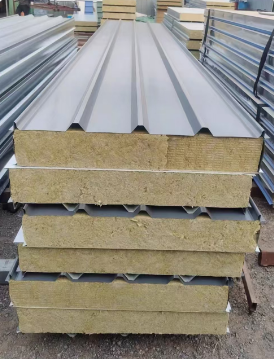 彩钢岩棉复合板在工艺上经粘合、加压、修边、压槽、落料、形成qi口式复合板,整体性好,刚度高,并具有抗冲击、抗腐蚀性能及保温、隔热、隔音、防潮等特点