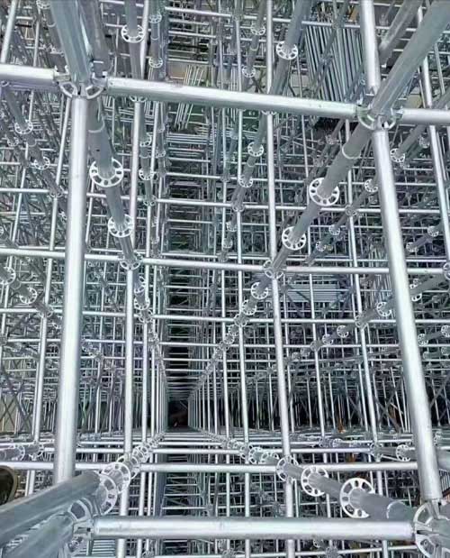 盘扣脚手架是一种采用盘扣连接方式的新型脚手架,它具有结构稳定、安全可靠、搭建简单方便等特点。其盘扣连接方式确保了脚手架的稳定性和承载能力,能为施工提供坚实的支撑。同时,它还可以根据不同施工需求进行灵活调整,适用于各种建筑结构的搭建。