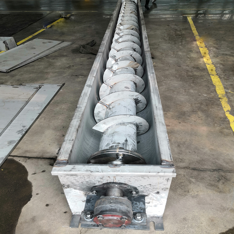 无中心轴干扰,对于输送带状、易缠绕物料有特殊的优越性。 用途: xLS型系列无轴螺旋输送机用于污水处理厂输送中细格栅其栅条净距50mm的除污机栅渣和压滤机泥饼等物料。 环保性能好。采用全封闭输送和易清洗的螺旋表面,可保证环境卫生和所送物料不受污染、不泄漏。 扭距大、能耗低。由于螺旋无轴,物料不易堵塞,排料口不堵塞,因而可以较低速度运转,平稳传动,降低能耗。扭距可达4000N/m。输送量大。输送量是相同直径传统有轴螺旋输送机的1.5倍。输送距离长。单机输送长度可达60米。并可根据用户需要,采用多级串联式安装,超长距离输送物料。能机动工作,一机多用。既可下方出料,又可端头出料。采用特制衬板,该机可在高温下工作。结构紧凑,节省空间,外型美观,操作简便,经济耐用。