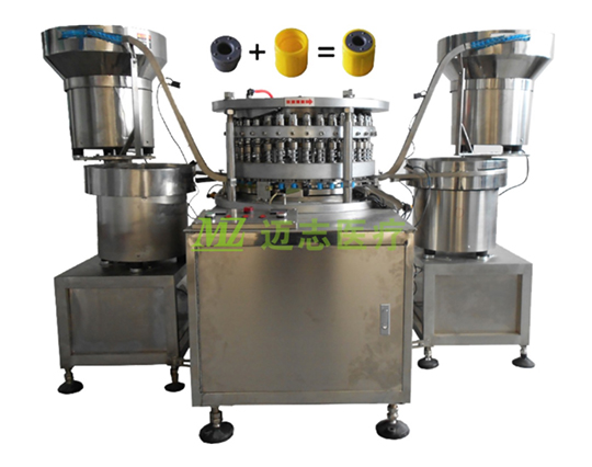 1、利用智能振动盘实现塑料盖帽与丁基胶塞自动排序输送,复合凸轮联动真空吸附装置完成精准嵌入。
