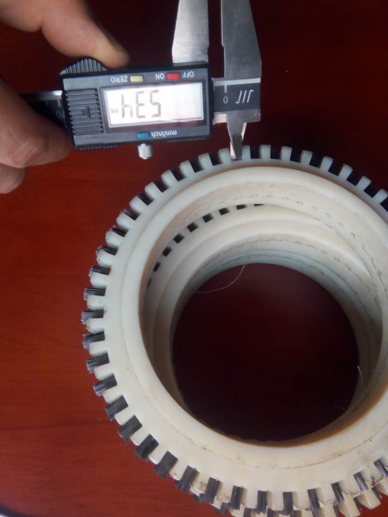 1、纺织业:产品有定型机毛刷轮、磨毛机毛刷、刷毛机毛刷、精梳机毛刷、棕刷、细纱机毛刷、磨皮机毛刷、抛光布轮。烧毛机专用刷辊,采用猪鬃或尼龙等刷丝材料,辊轴使用45#圆钢+注塑,纺织出来的坯布上有很多多余的毛茸,烧毛辊的用途就是将这些多余的毛茸刷出来,在刷辊下方有明火将这些毛茸烧掉;分幅机开幅辊,分幅辊采用45#圆钢的辊轴、尼龙等材料的刷毛制成,由中间往两边呈人字斜方式植毛,刷辊送布入卷,人字斜的作用就是将布往两边刷使其顺直;针板压边刷轮,中间为注塑体,刷毛大多为猪鬃,用途就是将布边通过刷毛的压力压到机器的针板上去。