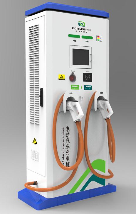 EC系列直流充电桩主要由人机交互单元、控制单元、计量单元、安全防护单元组成。其中,人机交互单元主要包括:桩体、LCD触摸屏、读卡模块、充电插头;控制单元主要包括:主监控、辅助模块以及模块管理;计量单元为电能表;安全防护单元包括:急停开关、过流及短路保护单元。