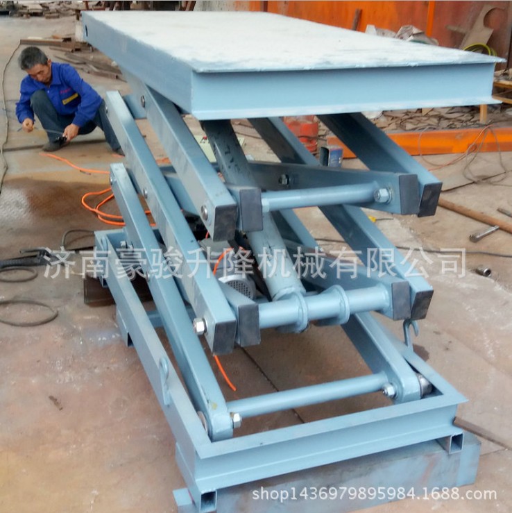 固定剪叉式液压升降平台的液压系统设置防坠、超载安全保护提醒装置,所到达的各个楼层和升降机工作台面都可以设置操作按钮,实现了升降平台的多点控制。该产品结构坚固,承载量大,升降平稳,安装维护简单方便,是经济实用的低楼层间替代电梯的理想货物输送设备。或者其他行业大型的物品装卸作业。以及不能移动只能固定进行作业,使装卸作业变得轻而易举。主要用于生产流水线间或楼层间的货物运送;物料上线、下线;工件装配时调节工件高度;高处给料机送料;仓储装卸场所与叉车等搬运车辆配套进行货物快速装卸等。 根据电动升降机的安装环境和使用要求,选择不同的可选配置,可取得更好的使用效果。主要用于货物仓库、停车场、码头、建筑、物流等的高空货物上下运输。