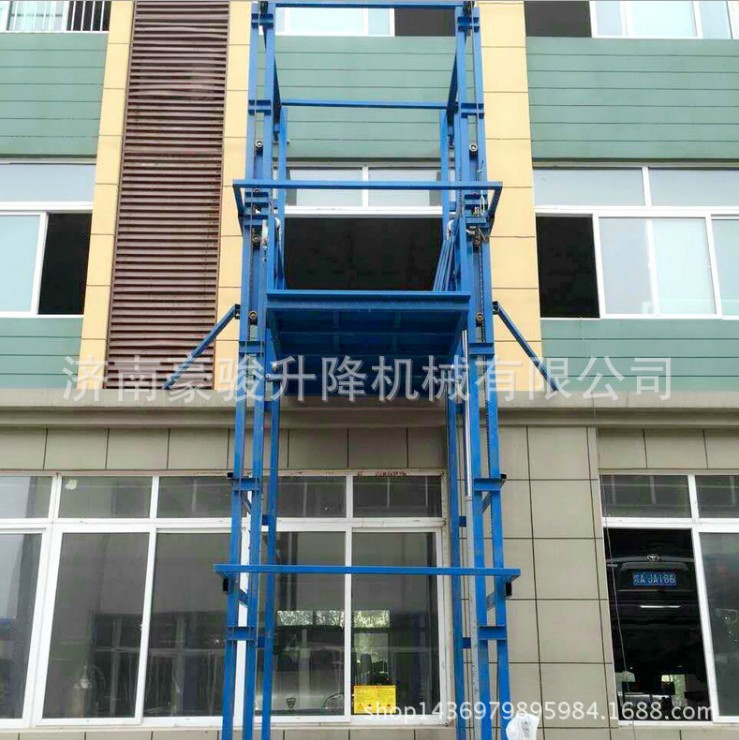 导轨式液压升降机是一种非剪叉式液压升降台,用于二层以上工业厂房、餐厅、酒楼货物运输,由于最低高度仅150-300mm,最实用于不能开挖地坑的工作场所,同时无须上部调点,具有多种形式(单柱、双柱、四柱),动作平稳、操作简单可靠,液压、电器多种货物传输经济、轻松。(具体承载力及升高层数、尺寸可根据用户要求设计制作)