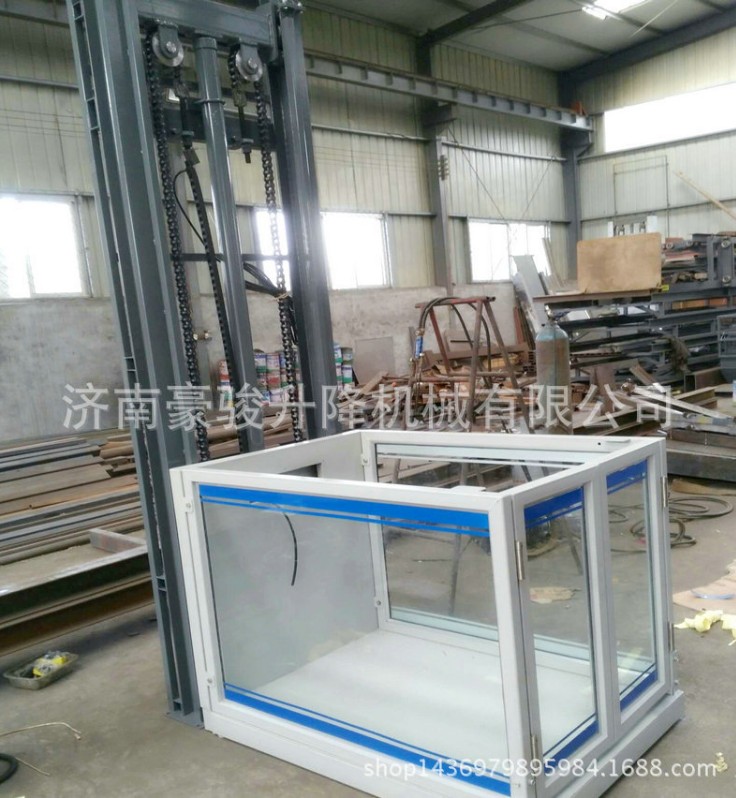 导轨式液压升降机是一种非剪叉式液压升降台,用于二层以上工业厂房、餐厅、酒楼货物运输,由于最低高度仅150-300mm,最实用于不能开挖地坑的工作场所,同时无须上部调点,具有多种形式(单柱、双柱、四柱),动作平稳、操作简单可靠,液压、电器多种货物传输经济、轻松。(具体承载力及升高层数、尺寸可根据用户要求设计制作)