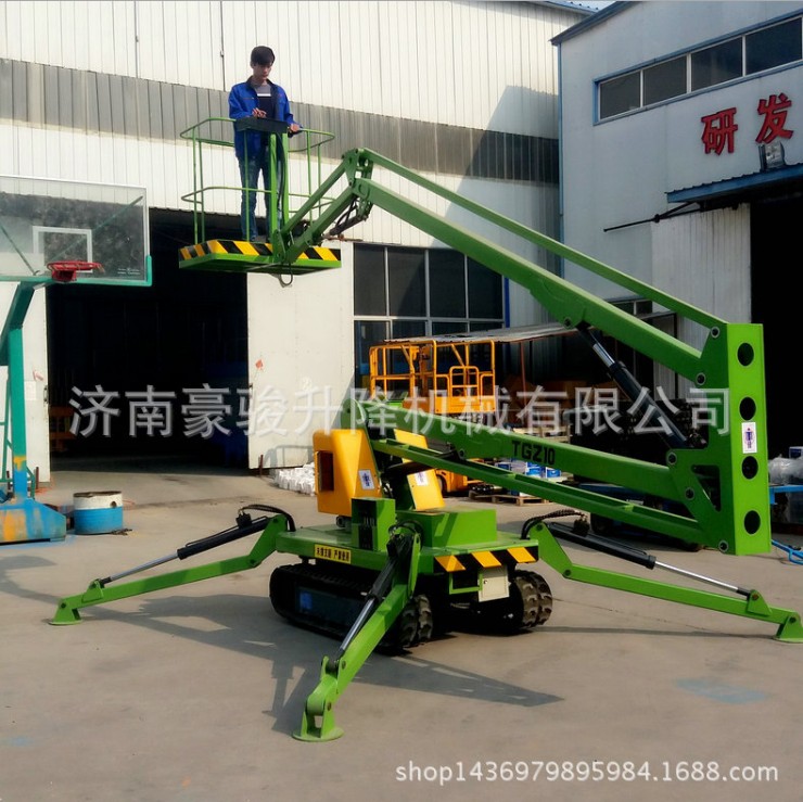 车载折臂升降平台悬伸作业、跨越一定的障碍或在一处升降可进行多点作业;平台载重量大,可供两人或多人同时作业并可搭载一定的设备;升降平台移动性好,转移场地方便;外型美观,适于室内外作业和存放。