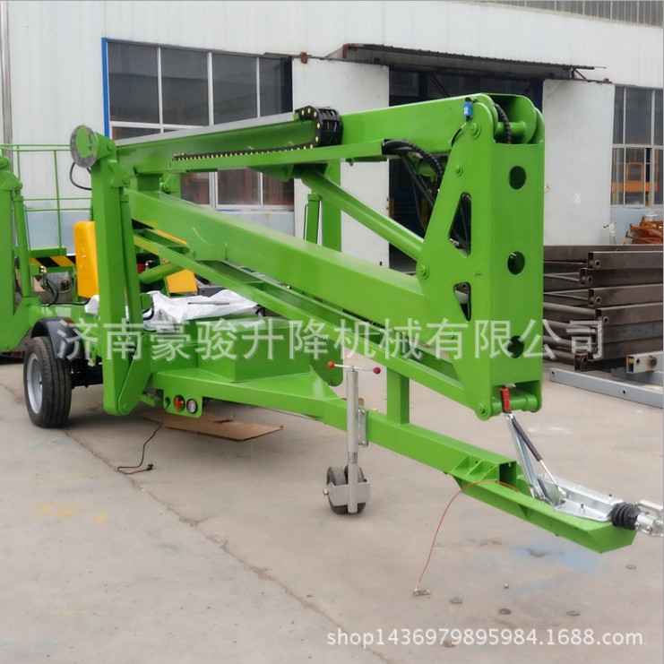 车载折臂升降平台悬伸作业、跨越一定的障碍或在一处升降可进行多点作业;平台载重量大,可供两人或多人同时作业并可搭载一定的设备;升降平台移动性好,转移场地方便;外型美观,适于室内外作业和存放。