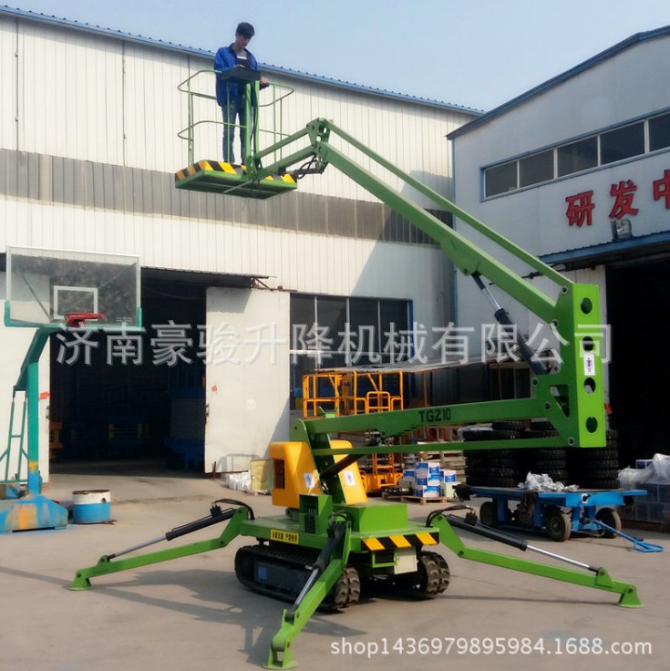 车载折臂升降平台悬伸作业、跨越一定的障碍或在一处升降可进行多点作业;平台载重量大,可供两人或多人同时作业并可搭载一定的设备;升降平台移动性好,转移场地方便;外型美观,适于室内外作业和存放。