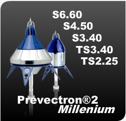 PREVECRON 2早期预放电避雷针共有五种型号。其中每种型号由不锈钢中央收集杆、电极和盒组成,适合于腐蚀性环境,对应于不同的 防雷保护半径,每种型号分别具有其不同性能的特征。INDELEC提前放电避雷针优点