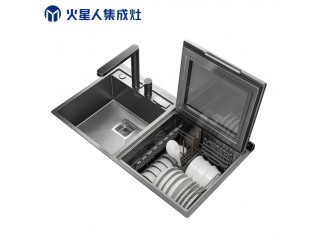 X7不锈钢台 侧吸下排集成灶 烟机燃气灶消毒柜集成