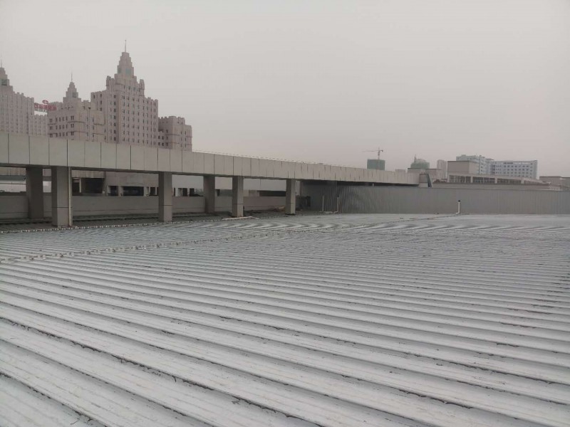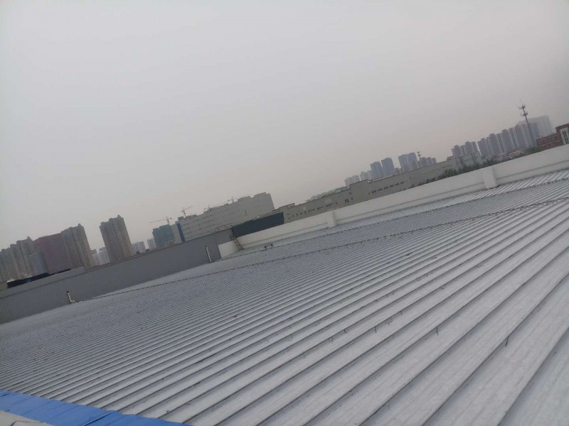 占地面8400平米,分三个区域。屋面采用900型冲孔板为底板,中间加100厚玻璃丝棉,屋面板为65-430型铝镁锰板,四周女儿墙用铝板包边,工期2个月。