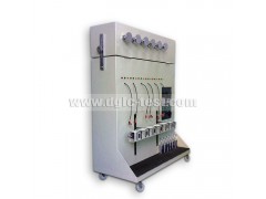 本线材突拉试验机系用来测试插头刃与导线的接合强度及导线的抗突拉强度。将插头固定于插座内,导线尾端连接冲锤杆,用冲击砝码进行突拉测试。之后,吊上砝码,进行回转试验及E极(接地极)耐电流试验。