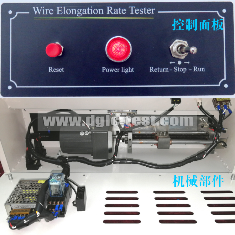 线材伸长率试验机可用于测试各种导线或铜箔、铝箔等金属材料延展性能。根据线材的导电特性,配合先进测控技术,本设备具有高精度的延伸百分比自动计算功能。固定250mm样品标距,数字显示伸长率百分比,断裂自动停机,并保存伸长率数值,是线材类材料作伸长测试的首选设备。