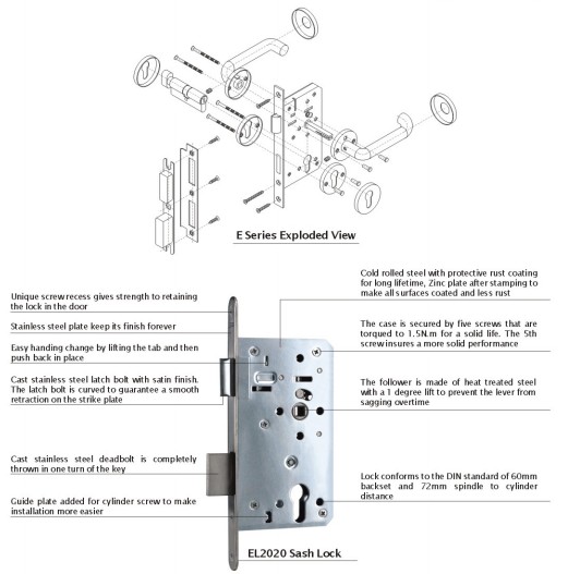 符合DIN18251标准尺寸,方便预制门开孔及锁体更换,