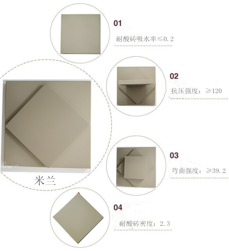 焦作众光瓷业生产的耐酸砖、耐酸瓷板(以下简称众光耐酸砖、耐酸瓷板)主要是以石英、长石、粘土为主要原料,经高温氧化分解制成的耐f蚀材料,产品背部加燕尾槽,施工时便于与耐酸泥牢固粘接,不易脱落。即可保z工程质量,又能延长工程使用寿命。主要成分是二*化硅,它在高温焙烧下形成大量的多红柱石,这是一种耐酸性能很高的物质.由于耐酸砖结构紧密,吸水率小,所以在常温下也可耐任何浓度的碱性介质,但不耐温度高的熔融碱.耐酸砖含有二*化硅70%以上,经烧结而成,在化学工业中多应用于砌酸沟、酸井、贮酸库及载酸大的受冲击地面。 众光耐酸砖、耐酸瓷板广泛应用于石油化工、制药、食品、乳业、果汁、造纸、化肥、化纤纺织、冶炼、电厂、电镀室等行业,以及塔、池、罐、槽的防f内衬,并在污水处理工程方面和露天地面等工作场地都发挥其耐f作用。