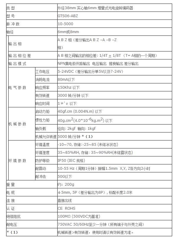 增量式光电旋转编码器ZSP3806 1000脉冲 ABZ三相 5-24VE6B2-CWZ6C