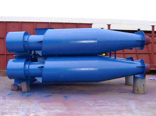当含尘气体进入除尘器,通过陶瓷导向器,在旋风子内部高速旋转,在离心力的作用下,粉尘和气体分离,粉尘降落在集尘箱内,经放灰阀排出,净化的气体形成上升的旋流,通过排气管汇于集气室,经出口由烟囱排出,达到除尘效果