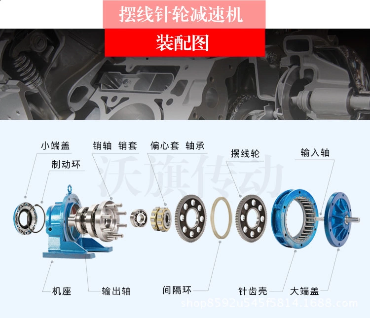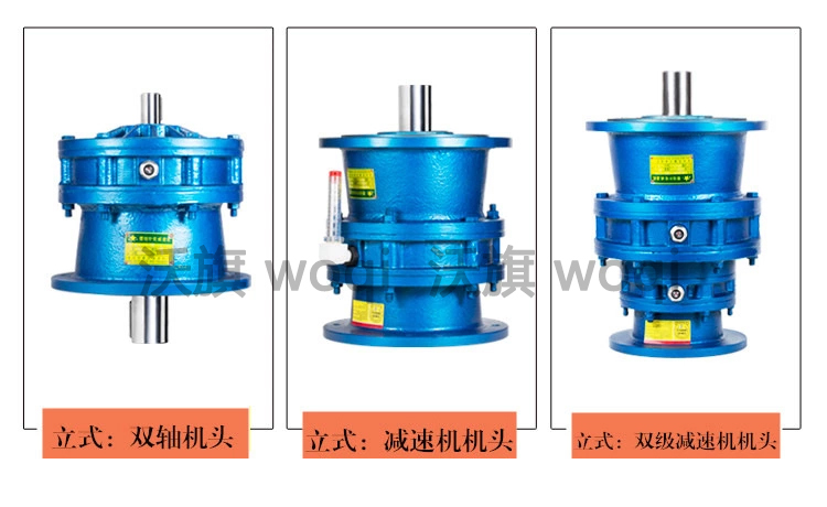 采用全系列模块化式组合设计制造,低噪音、高转矩、无漏油,多种安装方式,形成机 电一体化的传动装置。 摆线针轮减速机从0.25KW-55KW,输出扭矩可达70N.M-20000N.M,如需更低的输出转速,可采用双级摆线减速机甚至三级相组合的形式实现。可配不同类型的电机(普通电机、单相电机、防爆电机、变频电机、制动电机等)。