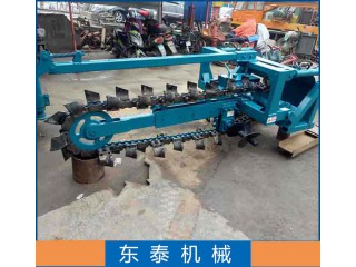 河南省临颍县东泰机械制造有限公司是生产打井机、开沟机、种树挖坑机、封沟机、洗井机等几大类几十个品种,生产的开沟机有盘式道沿开沟机和田间链式开沟机,链条开沟机主适合于田间开沟,圆盘开沟机适合于路边沟的开挖作业。拖拉机马力80马力以上带有爬行档,爬行档的要求是挂上慢档踩大油门一分钟走4-8米,没有爬行档的我厂可根据车型经过各种变速来降低车速。