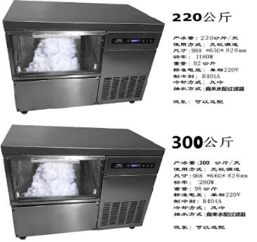 碎冰融化时间快,技师难制作;制雪机制造出来的雪比冰融化时间要长数小时,且雪松软,易造型,技师可随行所欲的做出花式各样的精品……