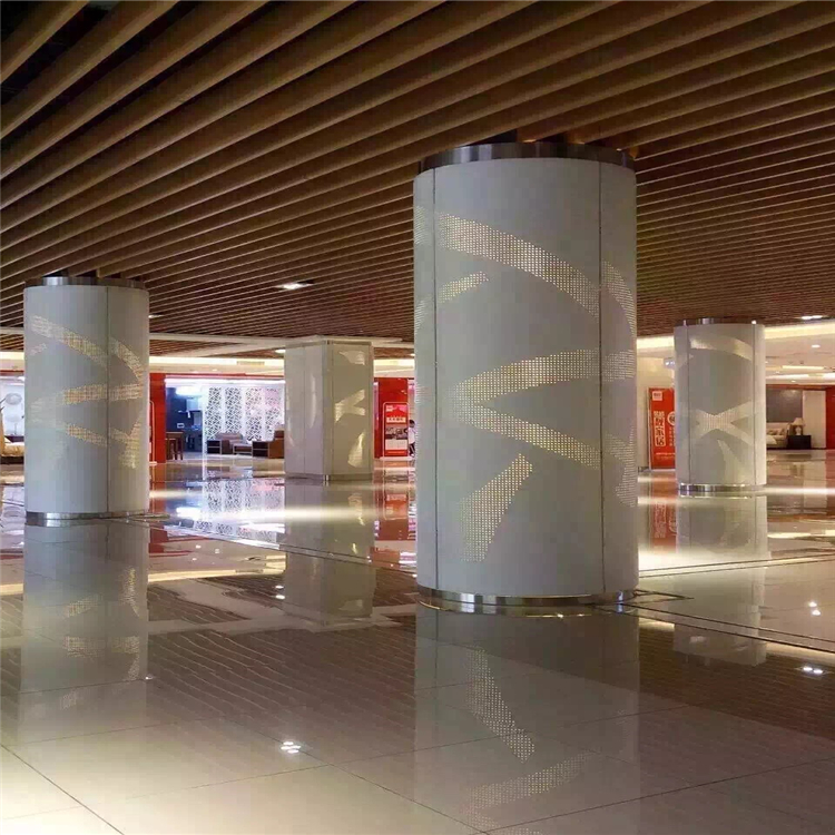 其实对于包柱铝单板相信大家并陌生,现在各大商场的柱子,酒店大堂,门头立柱基本都是用铝单板来包柱子,铝单板可以满足任何结构大站立柱的装饰,像一些圆弧,三角包柱铝单板,半弧形立柱铝单板,四方管形柱子铝镂空铝单板基实都可以使用我们富腾建材生产的包柱铝单板。