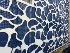 铝单板厂家定制外立面幕墙穿孔艺术铝板就像建筑物的外衣,由室外看向室内,表皮为“图”而室内空间为“底”,室外空间亮度高于室内,表皮的“图”成为视觉重点,且随着光线和观察视角的变化可以感受到的建筑界面开放程度亦不同。从室内看往室外时,穿孔铝板表皮为“图”而室外为“底”,由于室外空间亮度高于室内空间,人眼会不自觉捕捉亮度高的空间,透过高穿孔率的穿孔铝板经过视觉景象叠加处理仍可以充分体验室外的景致。