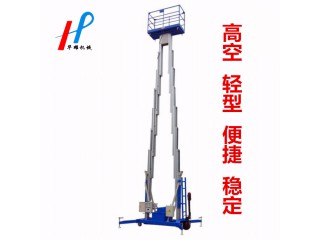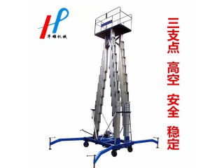 升降机采用高强度优质铝合金材料,具有造型美观、体积小、重量轻、运转灵活,推行方便。升降平稳、安全可靠等优点。它轻盈的外观,能在极小的空间内发挥最高的举升能力。广泛用于工厂、宾馆、餐厅、车站、影剧院、展览馆等场所,是保养机具、油漆装修、调换灯具、电器、清洁保养等用途的最佳安全伴侣。
