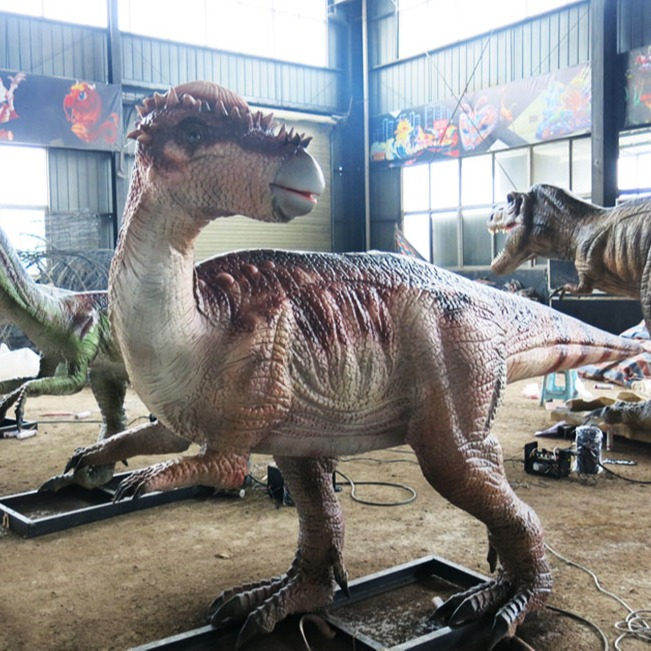 产品结合现代高科技及传统工艺,所有环节都是纯手工制作,根据客户的要求定制产品的大小,外观,色彩及动作,能达到眨眼、眼珠动、口张合、头部上下左右、身体上下左右、手动、腿动、尾摆动、呼吸、行走、下蛋等各类动作,并以微电脑控制成套动作,结合口张合发声,红外、声控、投币、刷卡等多种触发方式。产品栩栩如生,让人仿佛回到远古恐龙时代。