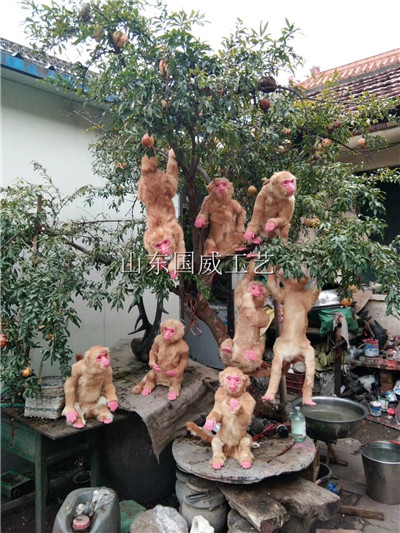 仿真猴子模型是根据实际猴子比例根据客户要求来定做的专业模型,本产品应用于影视拍摄仿真猴子道具,博物馆专业展览仿真模型,园林景区实物比例仿真猴子模型等。仿真猴子模型产品的内胎雏形全部采用人工分刻技术,由专业美工大师雕刻模具,形态归真比例协调,引进德国一体注塑科技机台,保证猴子雏形没有接痕。仿真猴子模型外部皮毛采用优质山羊皮安全熟制加工,去头皮,使皮革安全柔软又不失毛峰的油亮光滑。山东国威工艺成立于1980,是一家致力于开发生产仿真猴子模型的厂家,欢迎新老顾客来图定制,祝大家财源亨通。