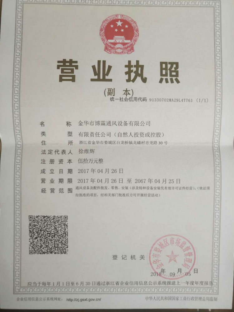 金华市博霖通风设备有限公司,位于金华市洞溪工业园区西南二环线,北邻330国道。公司自2004年创建以来,始终奉行“质量第一、信誉第一、服务第一”的宗旨,奋力拼搏、不断壮大,产品远销中东、东南亚、亚洲,赢得了国内外广大客户的一致好评,产品深受欢迎。