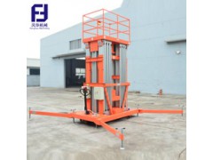 03 双柱铝合金升降平台结构紧凑,运输状态尺寸小,可进入一般电梯的轿厢以及能顺利通过门洞和狭小通道