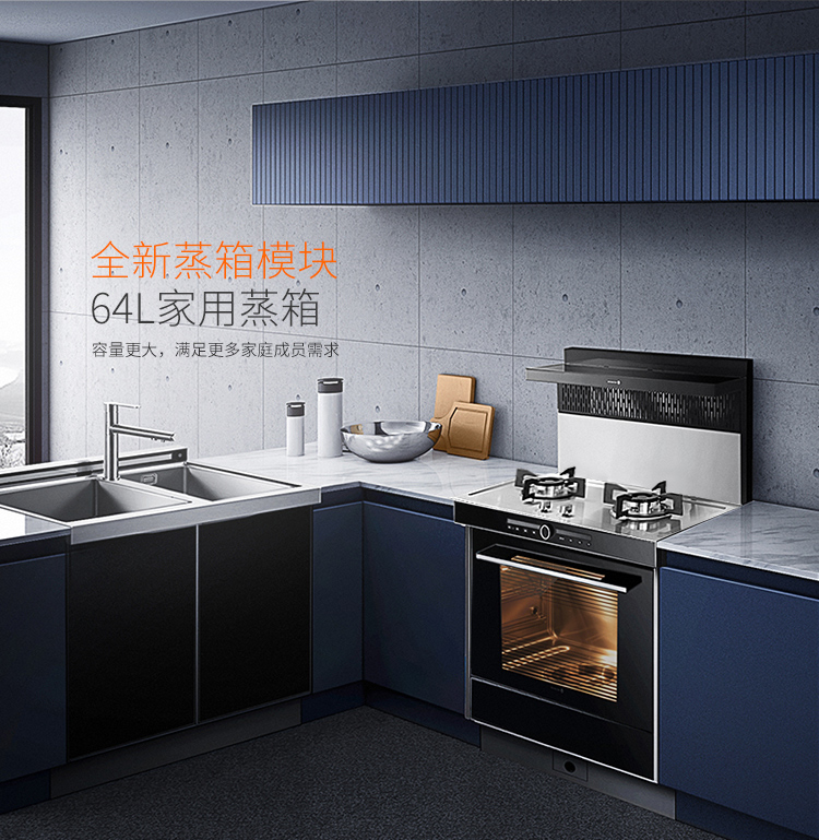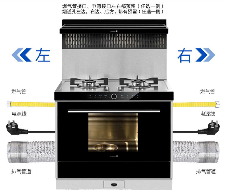 火星人E6G/Z 侧吸抽油烟燃气灶电蒸箱一体集成灶不锈钢台面