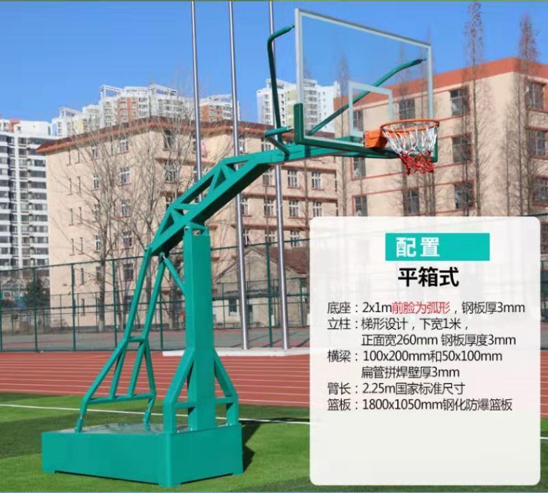 产品介绍:平箱篮球架:和凹箱一样,它的结构是平整的箱体,从结构上来说,要比凹箱的稳定性好上一些,配重能达到400公斤以上。此款篮球架有含滚轮的,也有伪移动的款式,在购买前需要先了解清楚。价格在5000-9000元不等,基它数据和凹箱一致。像前几天济南刮风吹走篮球架的新闻里的篮球架就是带滚轮的平箱可移动式篮球架,由于篮球架底部的滚轮不可以收缩,所以,在安装是需要将轮子想办法固定好,以免出现危险。