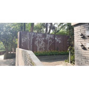 由于钢板的强度与韧性很大,所以可以利用很薄的钢板对空间进行非常清晰、准确的分隔,使场地变得简练而明快,又充满了力量。锈蚀钢板比较容易塑造成丰富变化的形状,并能保持好的整体性,这一点是木材、石材及混凝土都很难达到的。锈蚀钢板在腐蚀初期,表面生成的锈层较碳钢致密,裂纹和孔洞相对较少;25d后碳钢和耐候钢局部都出现了分层现象,腐蚀产物没有区别,差别主要是锈层中合金元素的作用。锈蚀钢板锈层中有Cu、Cr合金元素的析出,聚集在裂纹处可抵御大气中水气及其有害离子的侵入,防止基体金属进一步腐蚀。从而达到耐大气腐蚀的作用!