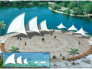 公司有现代化标准厂房,拥有专业技术人才组成的设计、施工队伍,充分保证了产品的质量及客户对造型的要求。公司 下属有膜结构开发设计中心、钢件车间、膜布车间、施工安装部、市场部、综合管理部等部门,拥有数台 套膜结 构专用焊接机械,年生产能力为20万平方米, 公司成立以来工程业绩遍布于上海、江苏、浙江、安徽等地,受到了全国各地广大 用户的一致好评,建立了良好的声誉。公司开发的膜结构建筑有张拉类、悬吊类、折叠整合类等,造型丰富多样,风格各异,艺术性强,具有浓厚的现代气息。 我公司设计,制作,生产,安装一条龙,并为广大的新老客户提供完善、优质的售后服务!膜材料由基布和涂层两部分组成.基布主要采用聚酯纤维和玻璃纤维材料;涂层材料主要聚氯乙烯和聚四氟乙烯。我公司生产加工的膜材料有: 1.PVC膜材料。PVC膜材料的特点是强度高、耐久性好、防火难燃、自洁性好,不受紫外线影响,使用寿命长,一般15年左右。具有高透光率,透光率为10%-15%,膜面自洁性能保持期:5-10年。对热能反射率73%,热吸收量很少。正是因为这种划时代的膜材料的发明,使膜结构车棚成为现代化的永久建筑。我公司生产加工的PVC膜材料按膜布重量计算有650g,950g,1100g,1200g,1300g每平方等。生产加工的膜布规格有:2.5m/幅, 3m/幅,3.5m/幅。每卷长度为50m。 2.PVDF膜材料。PVDF膜材料的特点是与PVC膜材料相比:机械强度与坚韧强度高,极高的防霉菌性和高耐磨性。对液体和气体的高耐渗透性,耐热稳定性好,阻燃,低燃,温度提升过程中抗蠕变性好,纯度高,抗紫外线和核辐射性,耐低温达-40℃。使用寿命长,一般30年左右。具有高透光率,透光率为10%-20%,膜面自洁保持性能保持期:大于20年,对热能反射率73%,热吸收量很少。我公司生产加工的PVDF膜材料按膜布重量计算有800g,950g,1100g,1200g,1300g每平方等。生产加工的膜布规格有:2.5m/幅, 3m/幅,3.5m/幅。每卷长度为100m。