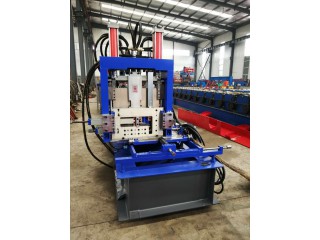 结构形式:机架采用龙门式,做成一个整体。两组冲孔机均为两冲孔,动力源为油缸下压式:孔位纵向固定,横向可调,可以沿纵向任意冲孔。