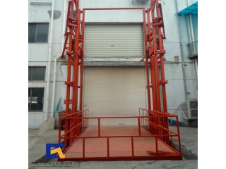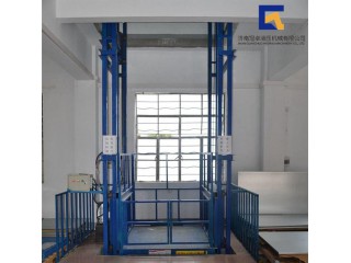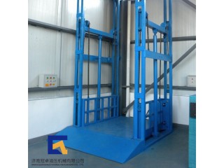 导轨式升降机是一种非剪叉式液压升降机械设备·用于二三层工业厂房,餐厅,酒楼楼层间的货物传输·最低高度在150-300mm,尤其适合不能开挖地坑的工作场所。并且无须上部吊点,形式多样化(单柱,双柱,四柱)。设备运行平稳,导轨式升降机的导轨一般为槽钢、工字钢,方管焊接制成,操作简单可靠,货物传输经济便捷。不能到达要求的场合等比较难解决的狭小空间,可以量身打造高效率的送货平台,产品液压系统设置防坠、上下层门互动连锁,各楼层和升降台工作台面均可设置操作按钮,实现多点控制。产品结构坚固,承载量大,升降平稳,安装维护简单方便,是经济实用的低楼层间替代电梯的理想货物输送设备。根据升降台的安装环境和使用要求,选择不同的可选配置,可取得更好的使用效果。