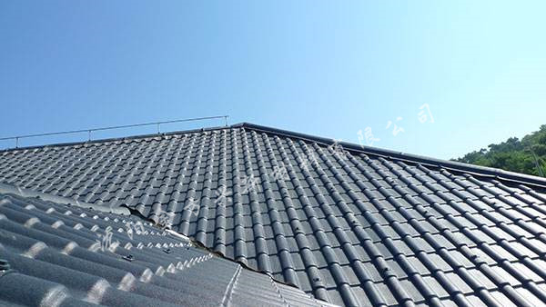 5、正、斜脊瓦安装搭接处应锯齐,正、斜脊瓦安装完毕后,再安装三通瓦。固定件为专用配件。固定时,选用电钻钻孔,孔径比钩钉丝杆大2mm。