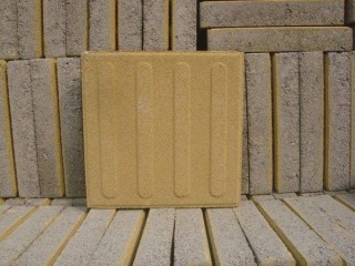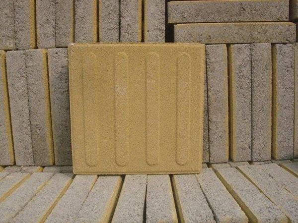 盲道砖是为盲人安全提供的行路方便道路设施。一般由三类砖铺就,一类是条形方向引路砖,引导盲人放心前行,称为行进盲道砖,或盲道方向引路砖;一类是带有圆点的提示砖,提示盲人前面有障碍,该转弯了,称为提示盲道砖,或盲道方位引路砖;最后一类是盲道危险警告引路砖,圆点较大,警视不要超越,前面危险。
