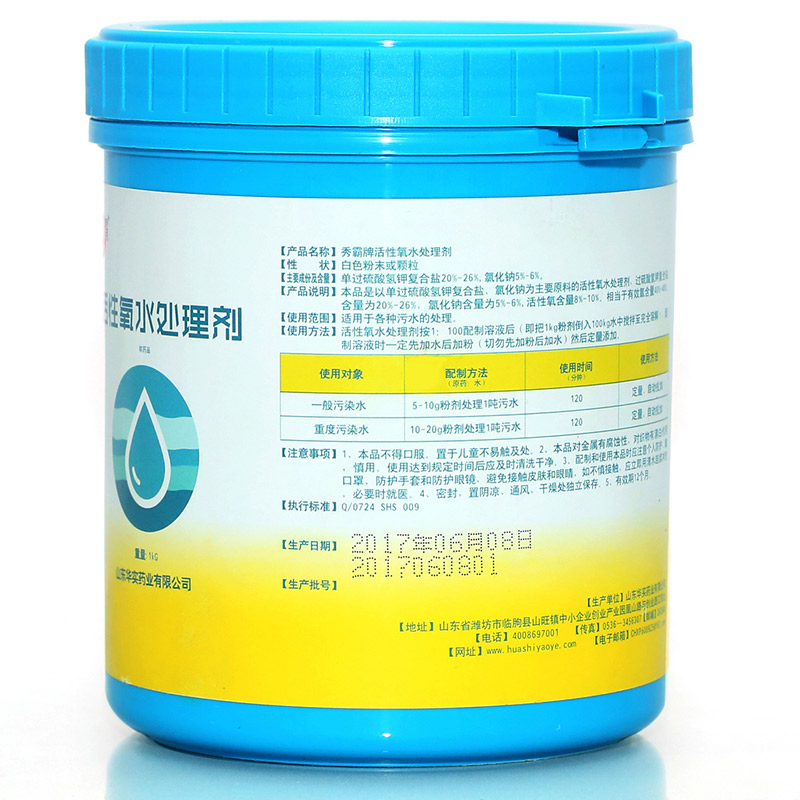 使用方法:活性氧水处理剂按1:100配制溶液后(即把1kg粉剂倒入100kg水中搅拌至完全溶解),配制溶液时一定先加水后加粉(切勿先加粉后加水)然后定量添加。
